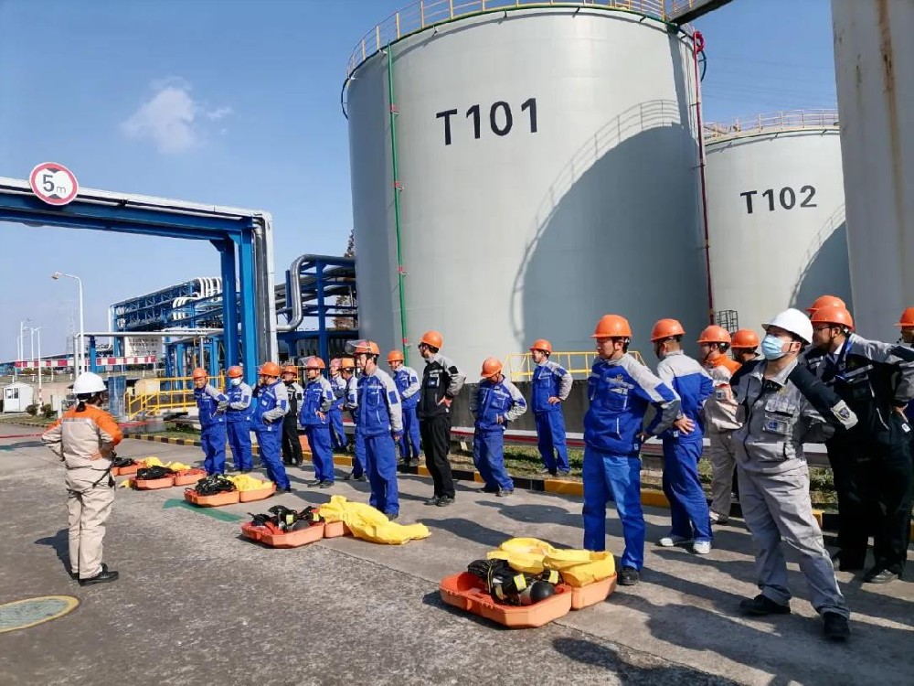 筑安全防線,為生命護航!_江陰華西化工碼頭有限公司開展了防化服及正壓式空氣呼吸器穿戴技能競賽。為進一步提升全體員工的安全防范意識和突發事件應急處置實戰技能,增強班組的凝聚力和集體榮譽感,確保各項工作安全、平穩、有序開展,11月30日下午,江陰華西化工碼頭有限公司開展了防化服及正壓式空氣呼吸器穿戴技···2021-12-02